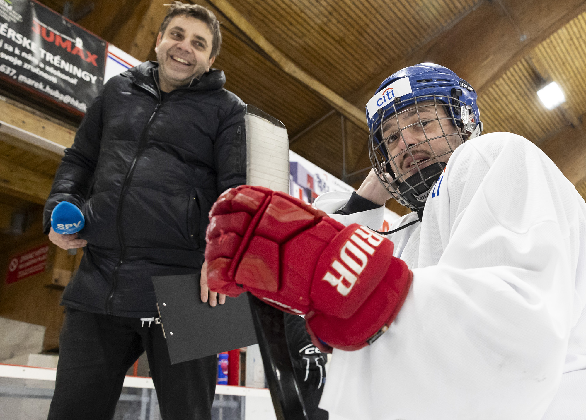 Medzi hráčmi sme na ľade videli aj jedného z lídrov našej reprezentácie, Martina Joppu. Ten na ľade medzi množstvom začiatočníkov pôsobí už na prvý pohľad veľmi skúsene a sebavedomo. Aj on sa tu niečo nové naučí a zároveň niečo naučí aj ostatných.