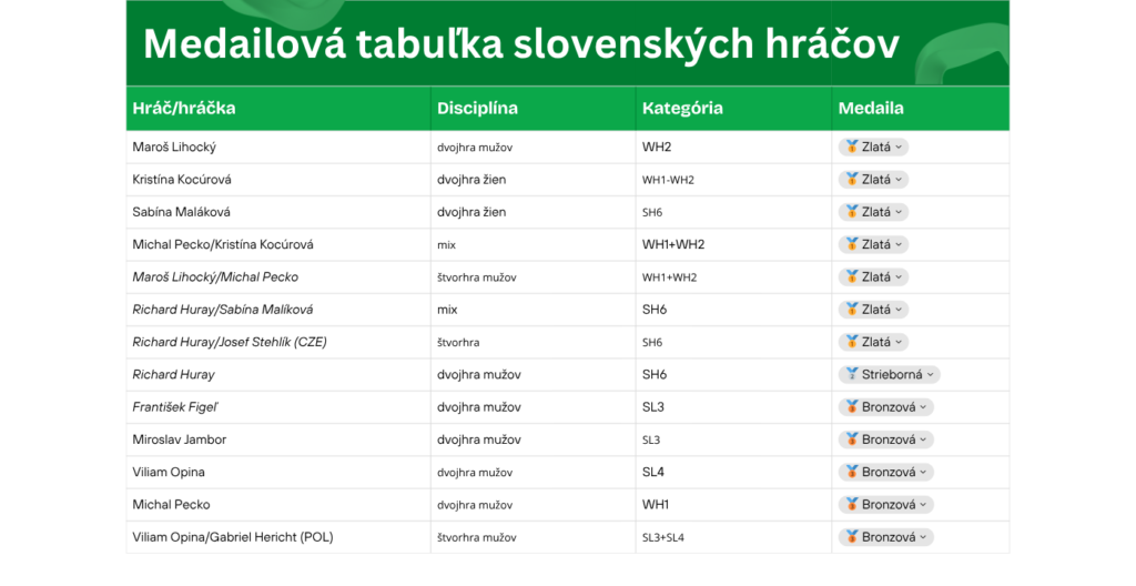 Medailová tabuľka slovenských hráčov