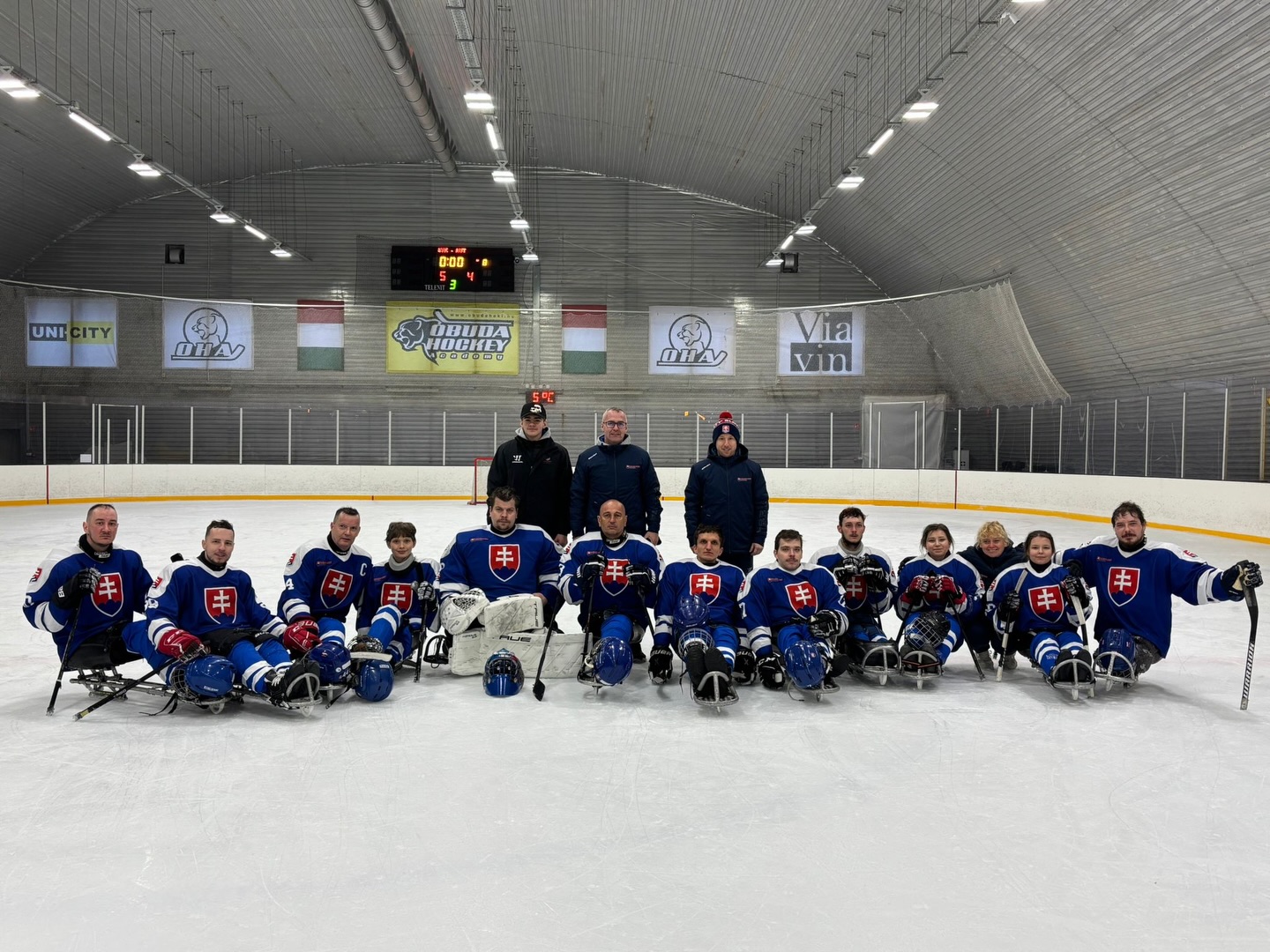 Slováci odohrali dva zápasy a oba víťazné – Maďarsko zdolali 9:0 a Rakúsko 5:4. Veľa hráčov si v Budapešti po prvýkrát oblieklo reprezentačný dres a svoju premiéru zvládli na výbornú. Nechýbali ani premiérové góly, o ktoré sa postarali Vladimír Truchlík, Dominik Javilak, Dávid Dzimko a Michaela Hozáková. Tím posilnila trojica skúsených hráčov, účastníkov paralympijského turnaja, brankár Eduard Lepáček a hráči v poli Róbert Turic a Miloš Večerek. Okrem Hozákovej sa na ľade objavila aj druhá žena z nášho širšieho výberu Ema Mária Šimáková.