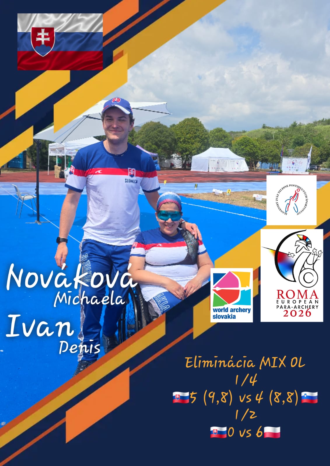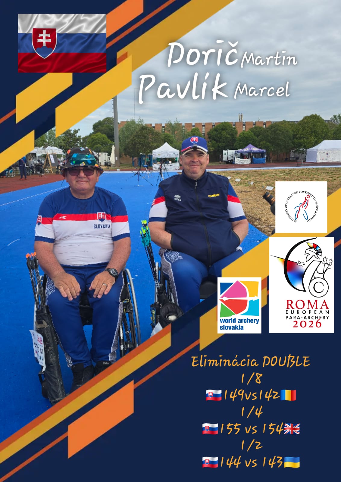 Fantastickú jazdu predviedla dvojica Martin Dorič a Marcel Pavlík v kladkovom luku. Postupne zdolali Rumunov 149:142, následne si poradili aj s favorizovanými Angličanmi z prvého miesta kvalifikácie o jediný bod a v semifinále zvládli ďalší tesný duel proti Ukrajincom. Ich postup do finále je výsledkom vyrovnanosti, presnosti a schopnosti zvládať rozhodujúce momenty. V boji o zlato ich čaká zajtra Turecko.